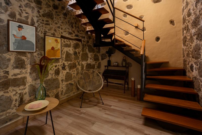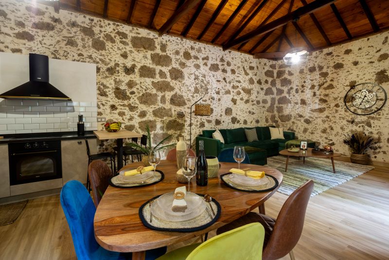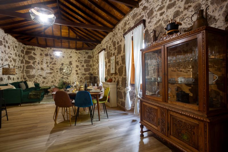 EL BREZAL es la hermana mayor de Casa Emblemática La Alameda. Ideal para una familia o grupo de amigos de hasta 5 personas, cuenta con dos dormitorios con cama de matrimonio conectados al más puro estilo tradicional canario así como 2 baños completos. Bajo un espectacular techo de madera a cuatro aguas que realza la belleza de las antiguas paredes de piedra, se encuentra un impresionante salón comedor con sofá de doble chaise longue y cocina totalmente equipada con una alacena del S. XIX, un espacio ideal para compartir juegos y conversaciones al calor de la chimenea. Cuenta, además, con una terraza chill out con sofá, ducha y tumbonas, una barbacoa con mesa de comedor para 6 comensales así como un aseo y zona de lavandería. Sin duda, un espacio idílico donde refugiarte y conectar con la naturaleza y la historia.