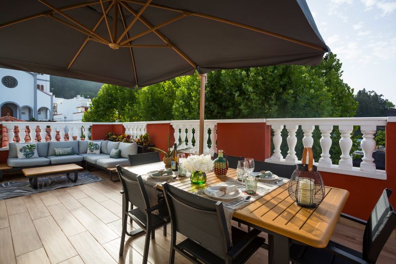 La espectacular azotea de la Casa El Brezal ofrece el espacio ideal para disfrutar de tu estancia. Dispone de barbacoa, mesa comedor de exterior para 6 comensales, un amplio sillón esquinero y zona de ducha con tumbonas para las jornadas de verano. Además, tiene un aseo y zona de lavandería.